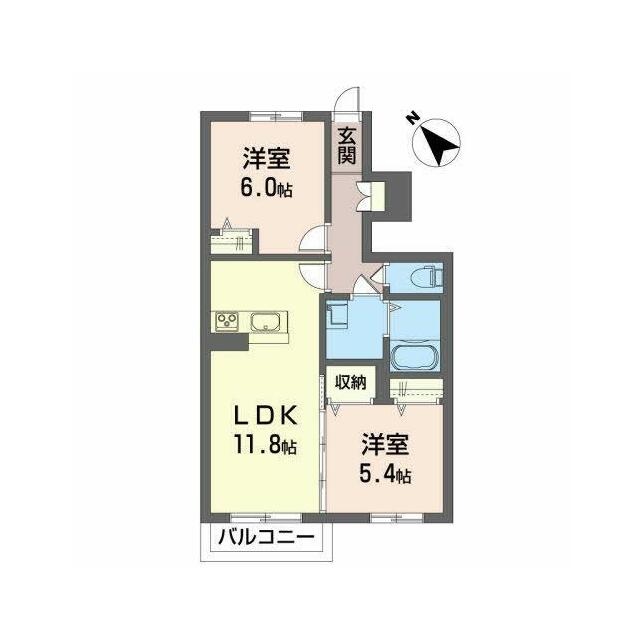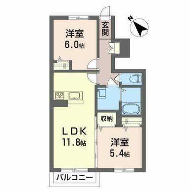 | 間取り | 2LDK(LDK11.8帖 洋室6.0帖 洋室5.4帖) | 主要採光面 | 南 |