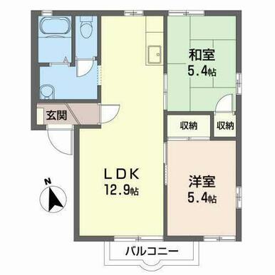 | 間取り | 2LDK(LDK12.9帖 洋室5.4帖 洋室5.4帖) | 主要採光面 | 南 |