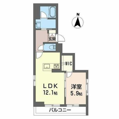 | 間取り | 1LDK(LDK12.1帖 洋室5.9帖) | 主要採光面 | 南 |