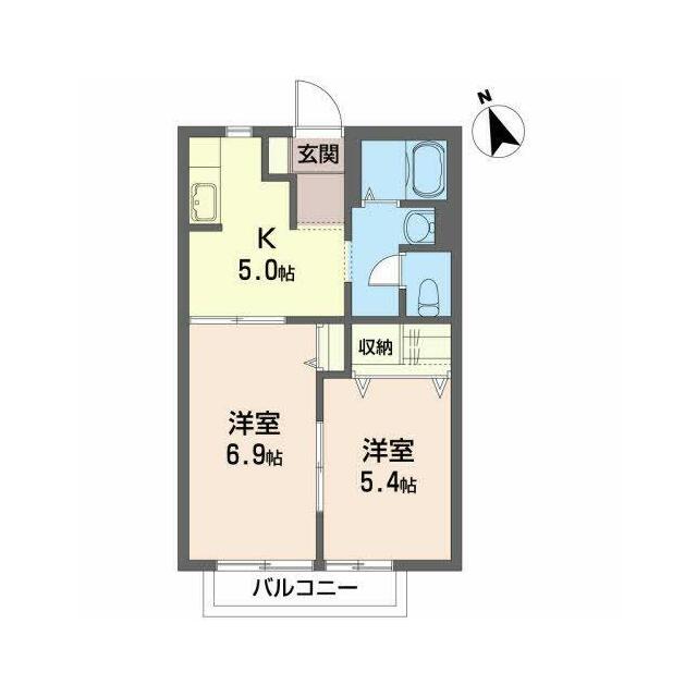 | 間取り | 2K(K5.0帖 洋室6.9帖 洋室5.4帖) | 主要採光面 | 南 |