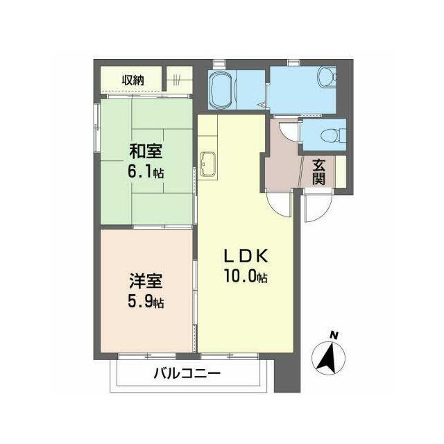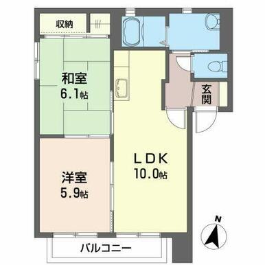 | 間取り | 2LDK(LDK10.3帖 洋室5.9帖 和室6.1帖) | 主要採光面 | 南 |